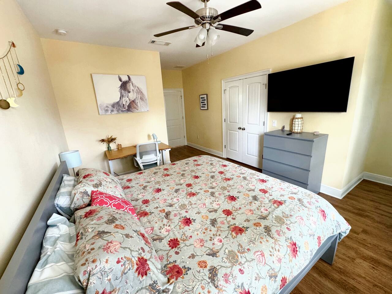 Welcome to Casa del Sole, your bright retreat in the heart of Downtown Pensacola. Just steps from lively restaurants, shops, and nightlife, and only a short drive to Pensacola Beach, this home is ideal for families, friends, or business travelers. This spacious home features three bedrooms, each with a private ensuite bathroom. The primary has a King Bed, the second a Queen Bed, and the third offers a Twin over Full Bunk Bed. Unwind with 4K smart TVs in every room. The house is fully equipped with a modern kitchen, fast fiber-optic internet, beach chairs and towels, and an in-home laundry for your convenience. Enjoy self check-in, private parking for two vehicles, and free EV charging.